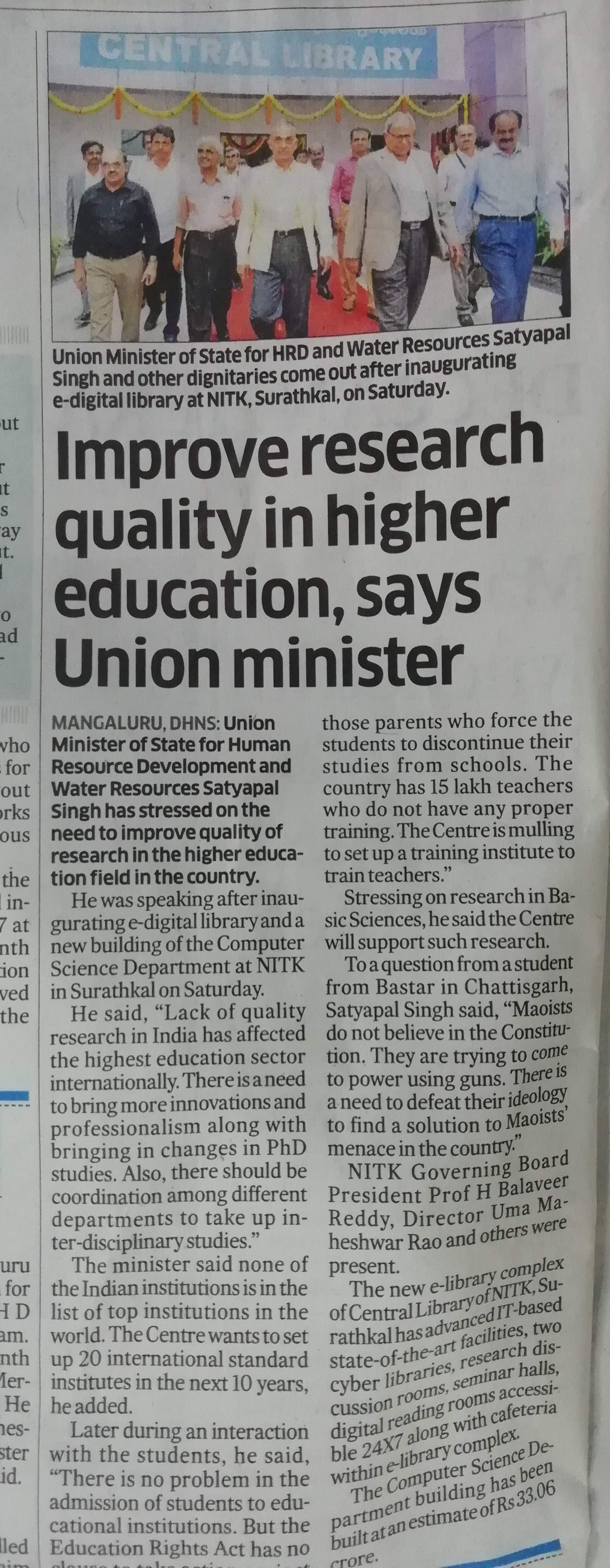 Improve Research Quality in Higher Education, Says Union Minister